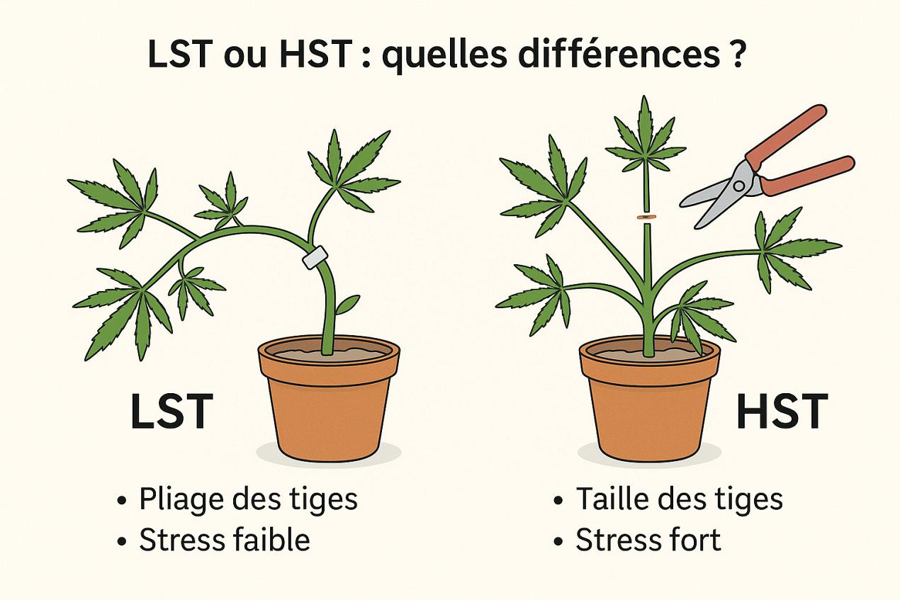 Faut-il plier ou tailler ? Dans le monde de la culture du cannabis, deux grandes écoles s’affrontent : le Low Stress Training (LST) et le High Stress Training (HST). Ces deux techniques de palissage visent à optimiser la lumière et la production, mais leur approche et leurs effets sur la plante sont très différents. Voici un comparatif clair pour choisir celle qui vous correspond.